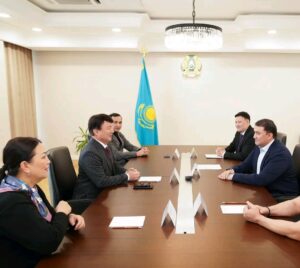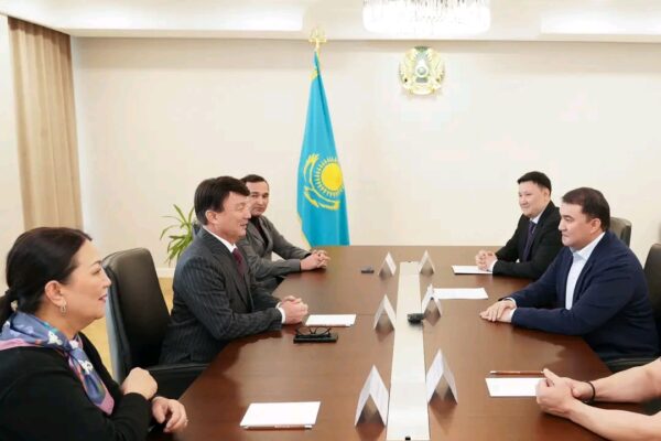 Түркістан облысының әкімі Нұралхан Көшеров Қазақстан Республикасының мәдениет қайраткері Қанат Айтбаев пен Қазақстан Республикасының еңбек…